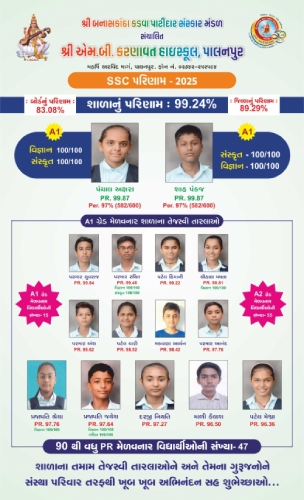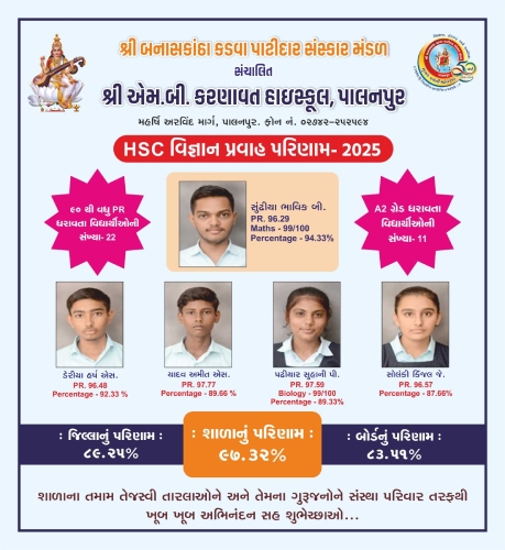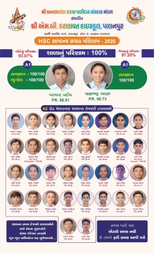 | શ્રી એમ બી કર્ણાવત હાઇસ્કુલ નું પરિણામ | - | 92.49% | 85.71% | - | - | 79.77% |